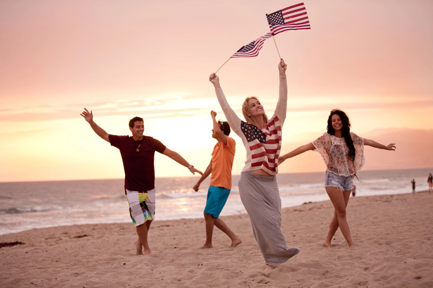 Four young multicultural Americans celebrating Fourth of July on beach - America in Transition: Which of These 2 Paths Will Save Us?