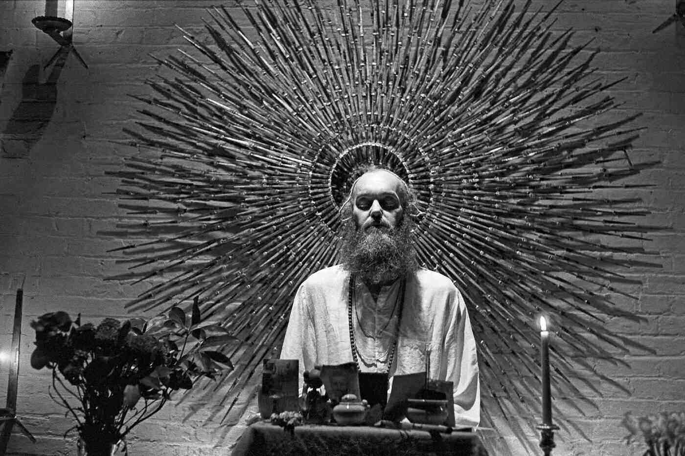 Ram Dass during a series of talks, from which the text of Be Here Now was largely taken, at a sculpture studio in Manhattan in 1967 or ’68. (c) Photo Rameshwar Das