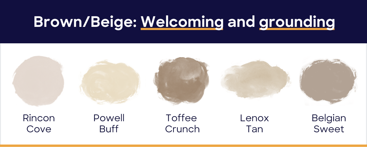 The undertones in light brown, beige and tan neutral colours make them welcoming and warm. You may be subconsciously more relaxed while surrounded by the shades in this colour family.