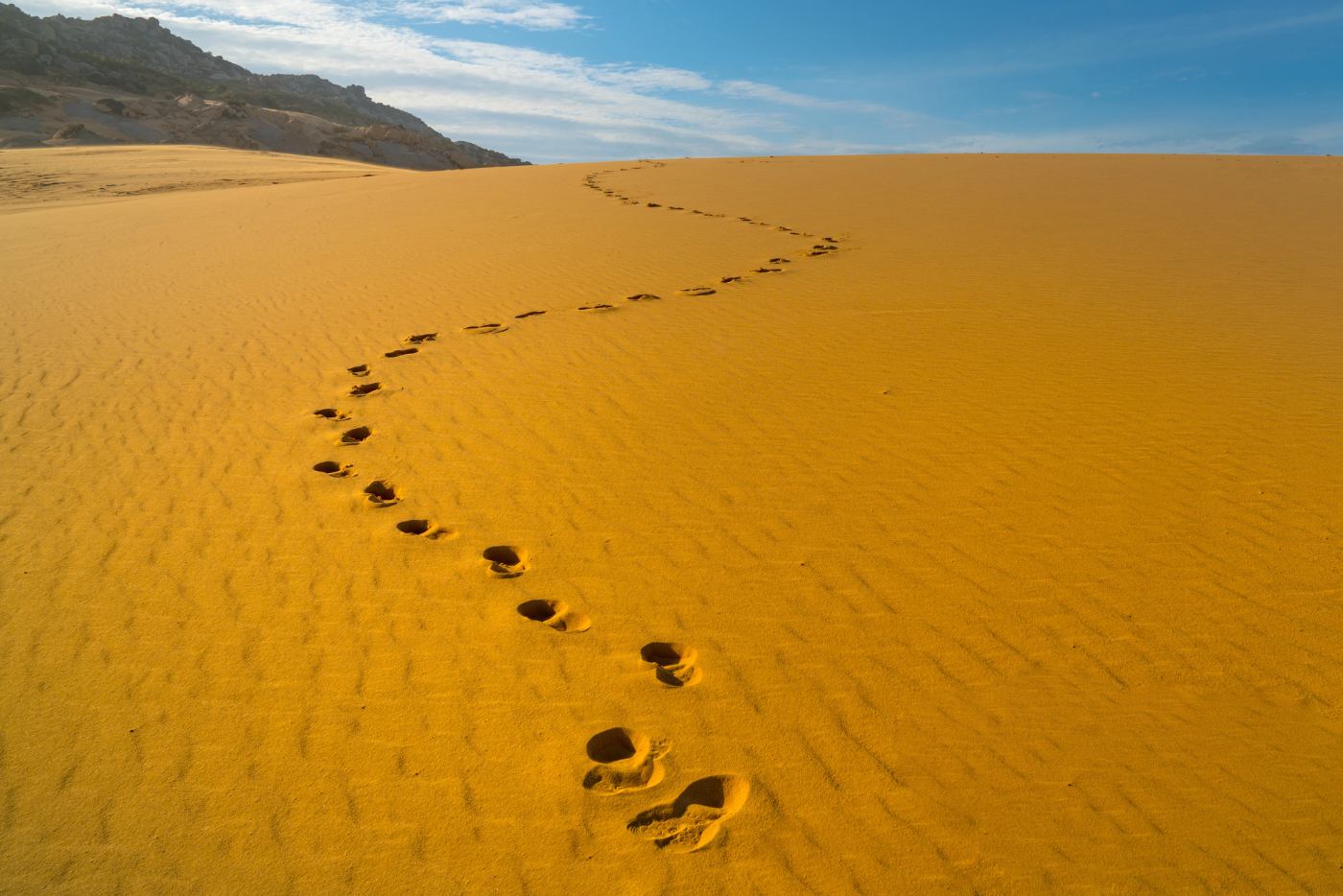 Human footsteps through desert sand - How Faith Can Keep You Going Through Fear and Adversity