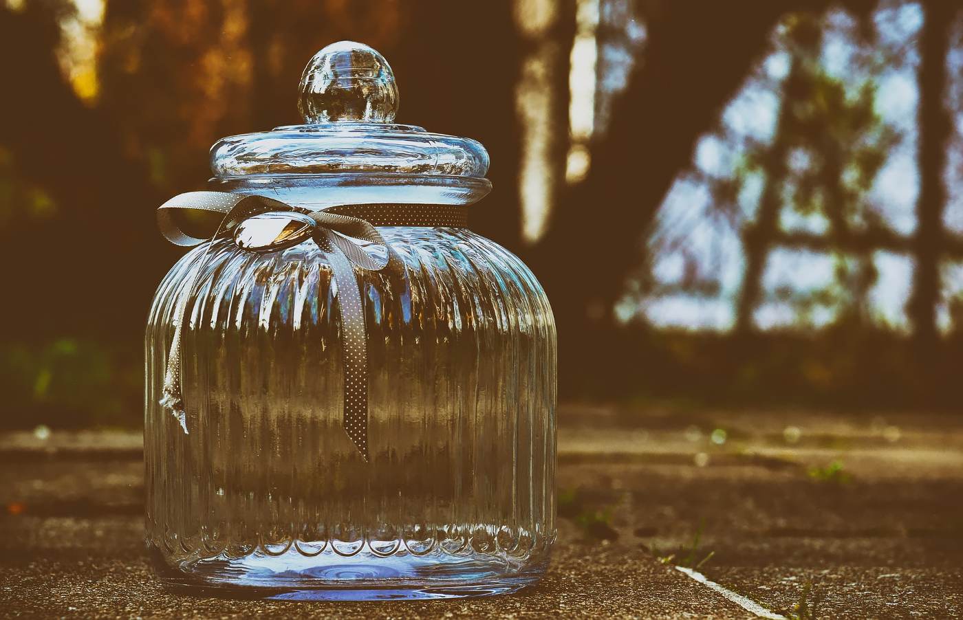 Empty glass jar sitting outside next to trees - Finding Your Purpose Without Extensive Travel or Money
