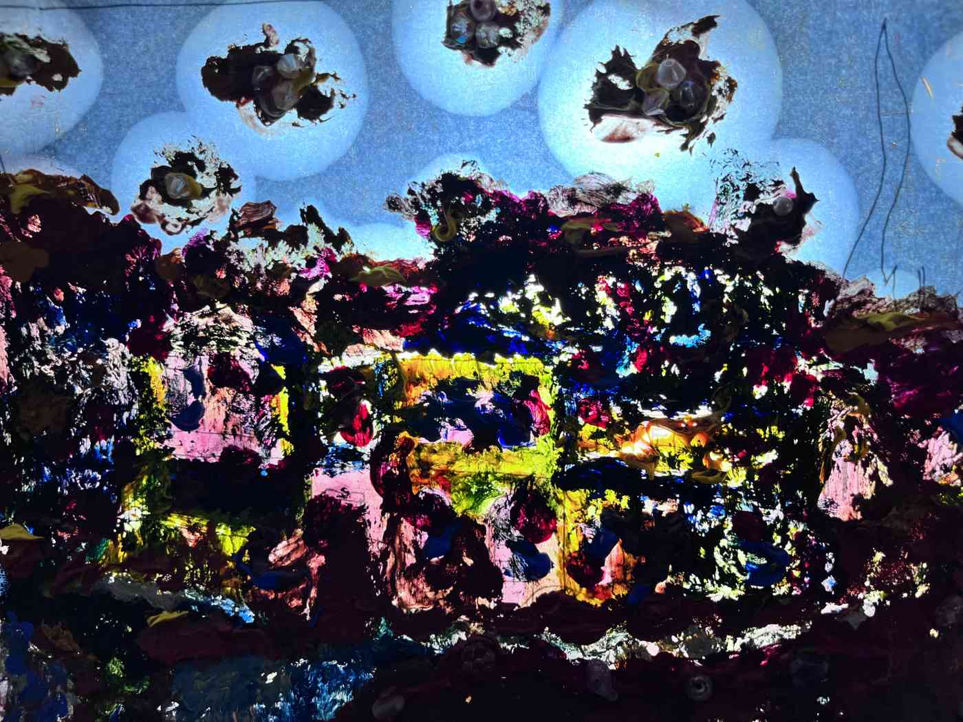 Each phrase still draws a line, as if God sits beside, behind, beyond.