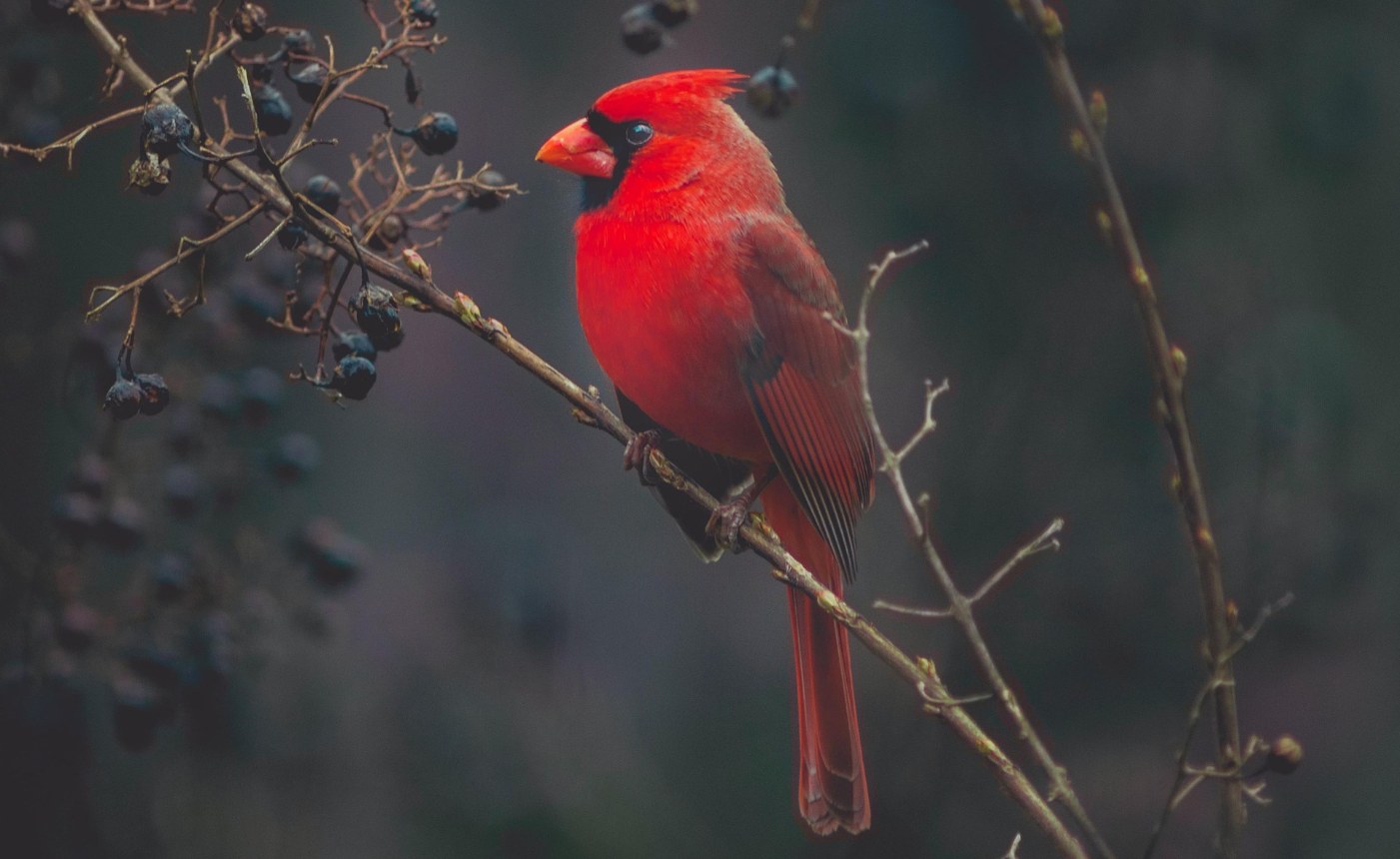 Red cardinal in a tree with berries on it - INEFFABLE: A visitation from a great spirit I'd never forget