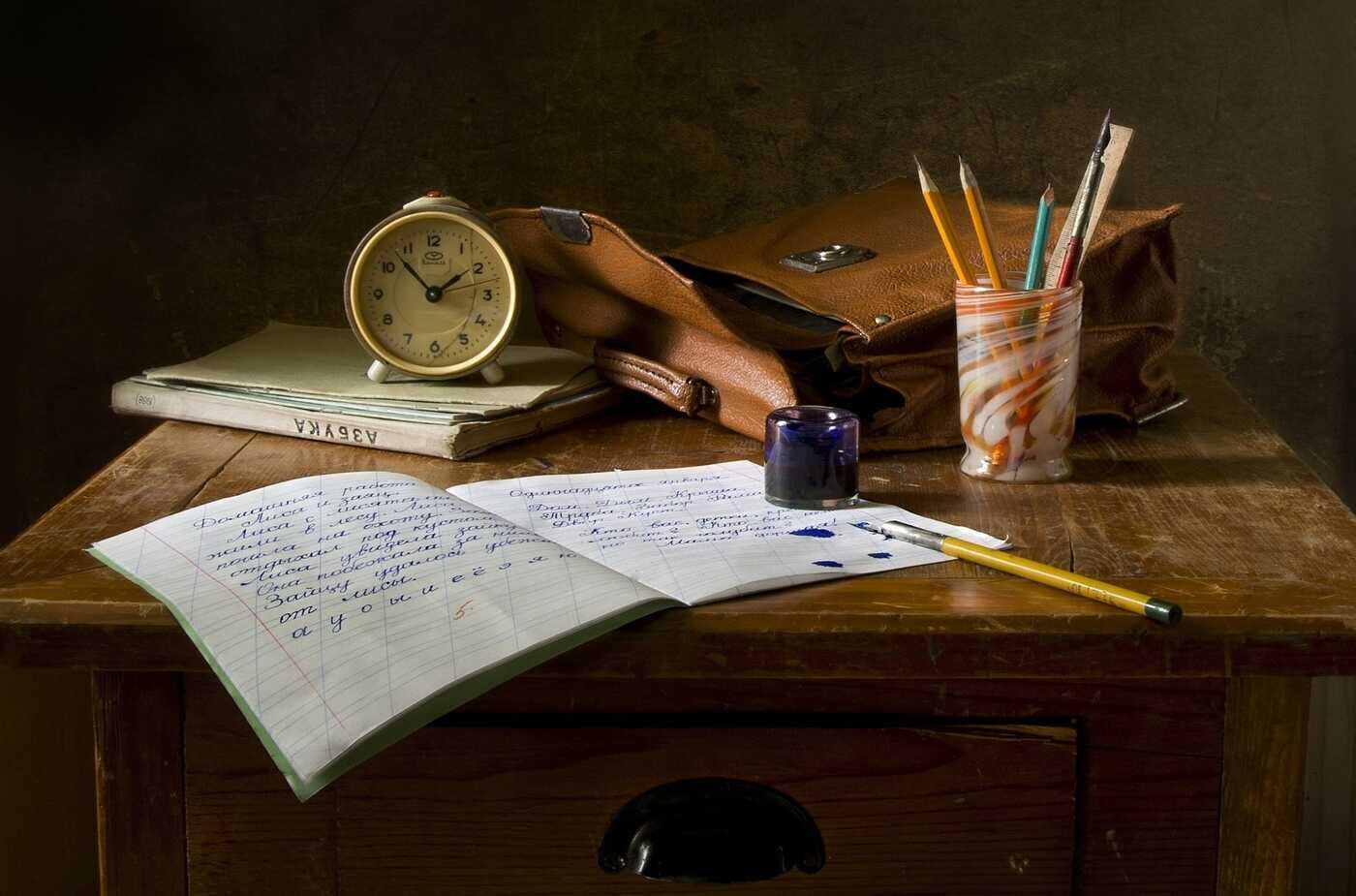 desk with writing book, pens and clock - Get in Touch With Your (Inner) Life Therapist in 5 Steps