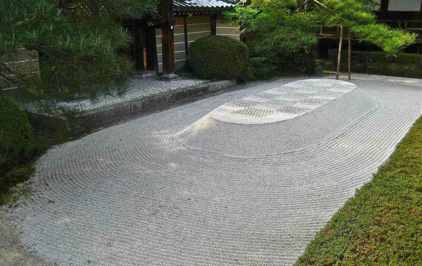 Another prominent feature is “pattern drawing” with sand or rocks to allude to or resemble oceans, rivers or lakes, including the movement of waves and ripples, which feature in Japanese art.