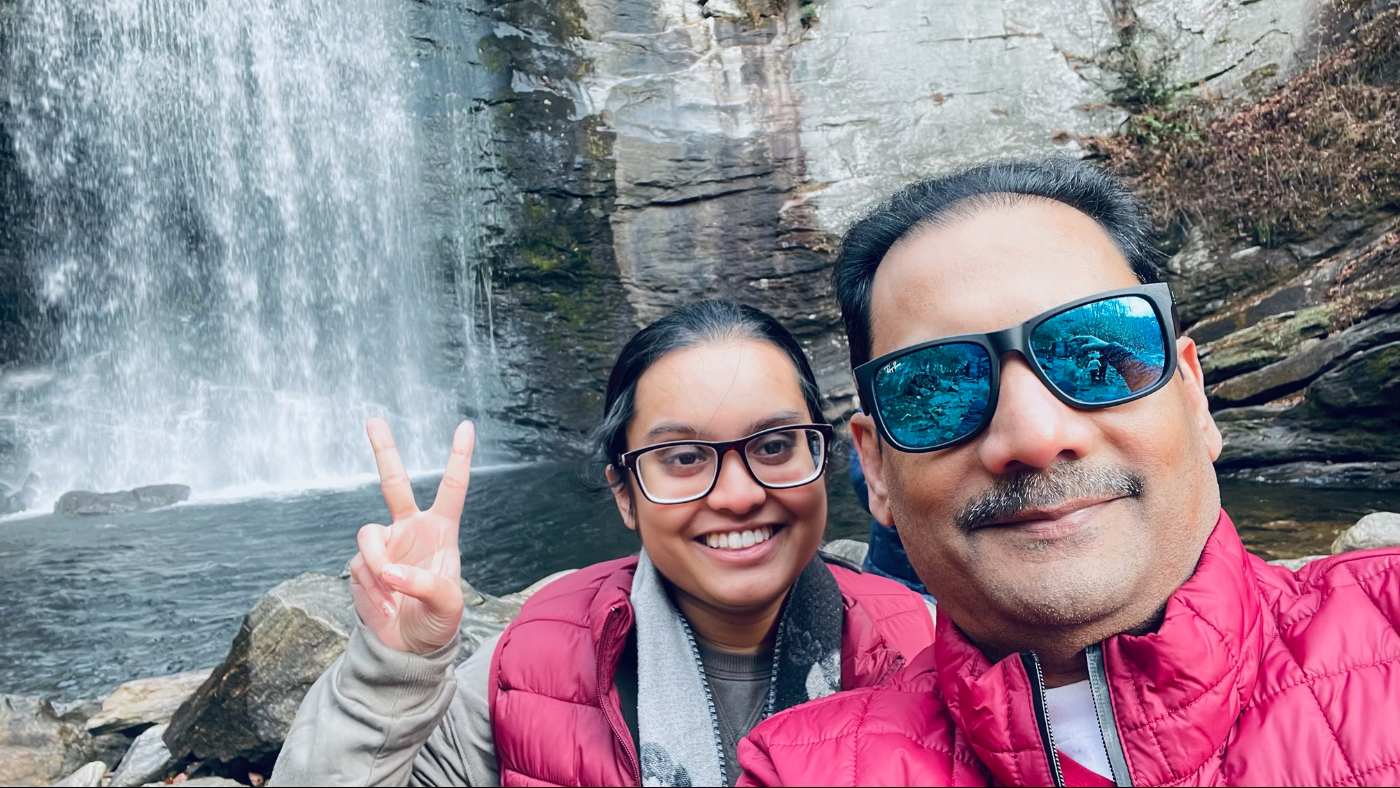 Samia Mehbub and father at Looking Glass Falls in North Carolina