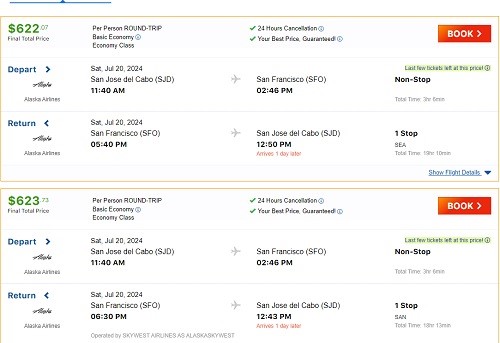How much would it cost to buy a new ticket, a day or two before the flight? I searched. At first, the sums appeared outlandish: the first one that appeared was $1600, one way. Then—scrolling down past all of the morning flights—why would they be more costly?—I found one! At 5 p.m. there was a nonstop flight from Cabo del Jose airport to San Francisco for $565! It was possible. I didn’t even have to use my shaky phone voice.