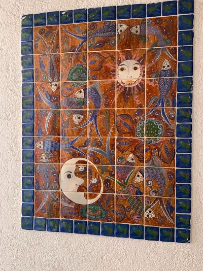 Tiles showing sun and moon illustrations at hotel Posada LunaSol in La Paz - NIGHT SEA JOURNEY: Buying back sanity in La Paz, Mexico