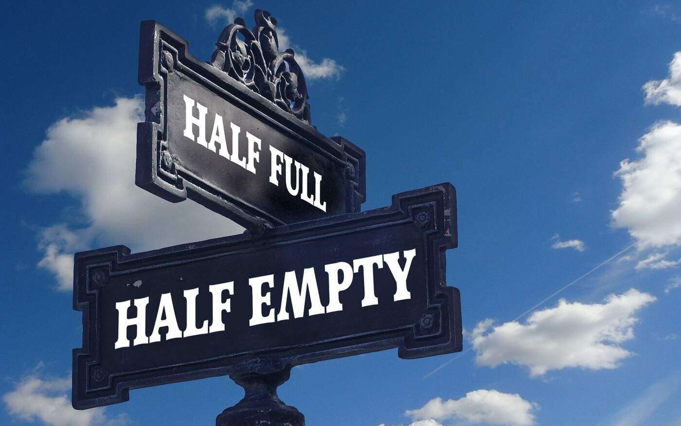 road signs at crossroads reading half full and half empty - Perception Management: We Can Shape Our Own Reality