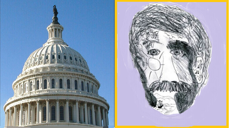 Composite photo of top of U.S. Congress next to hand-drawn human face