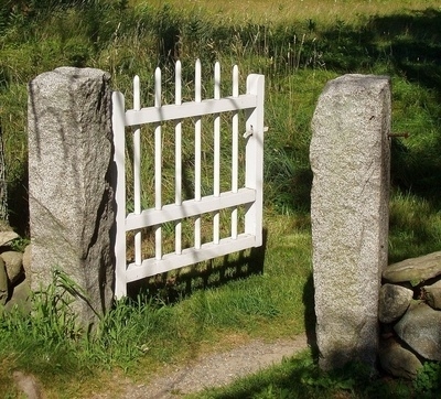 Weeds next to garden gate