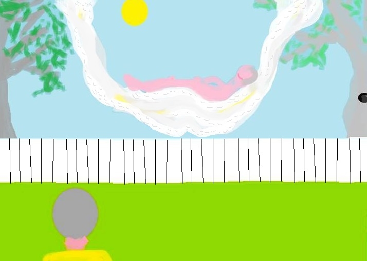 Illustration of man lying in white hammock