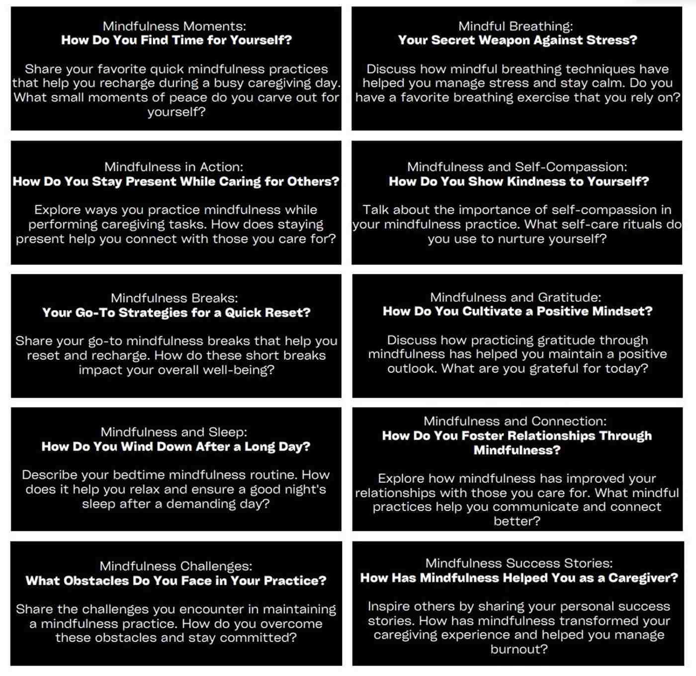 10 mindfulness prompts for caregiver support group facilitators