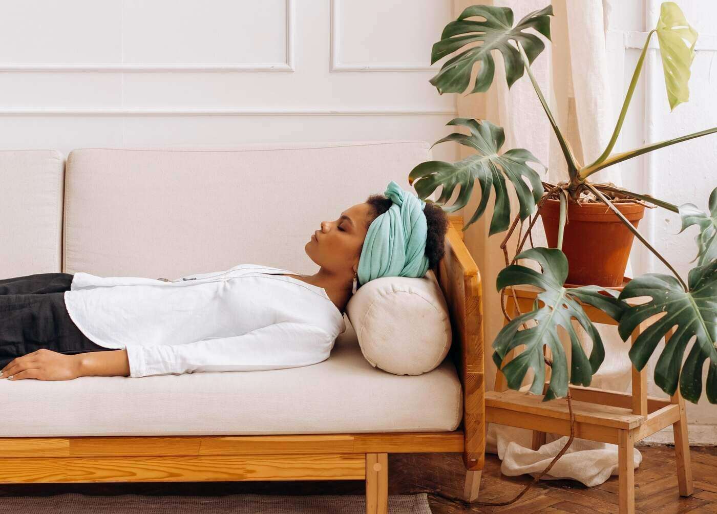 Put your phone on silent mode and sit on the edge of your bed. Close your eyes and take a few deep breaths. Before you lie down to begin the meditation, take a few moments to ground and centre, so you can rid yourself of some of the anxious energy circulating in your body: