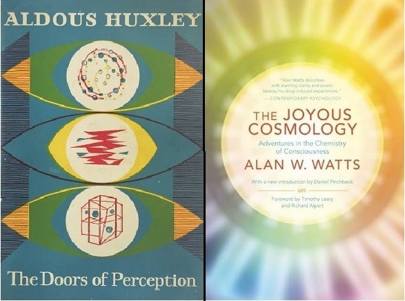 Books about psychedelics by popular authors Aldous Huxley and Alan Watts