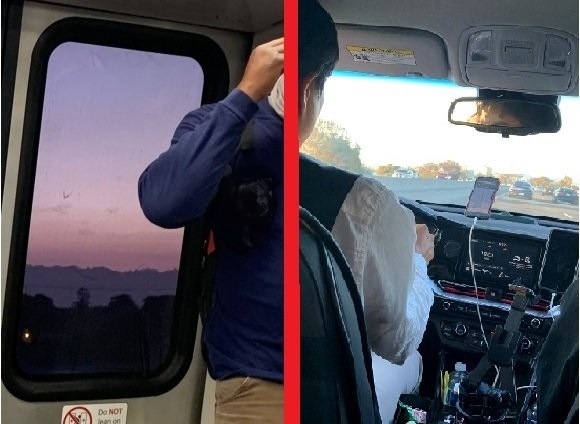 Left: the BART train to the Airport, whose sudden stopping made passengers find other means of travel. Right: the Uber that rescued the author and others.