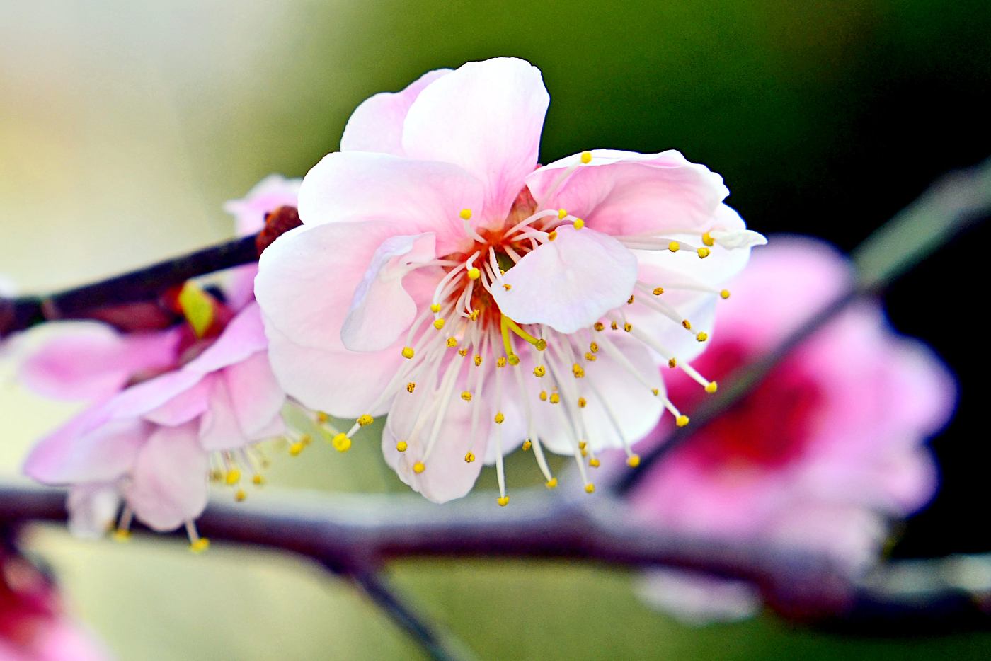 The Japanese ume plum is sometimes referred to as an apricot, but let’s call it a plum, according to the longtime tradition. The Japanese plum tree is the first to bloom. Ume blooms in February, ahead of sakura by a month. The flowering period is short: It begins in mid-February and early March, lasting a little more than a week.